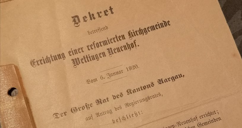 Am 6. Januar 1920 het de Grossi Rot vom Kanton Aargau per Dekret d Chilegmeind Wettige-Noiehof gründ. Am 5. Januar 2020 wird das gfiired.