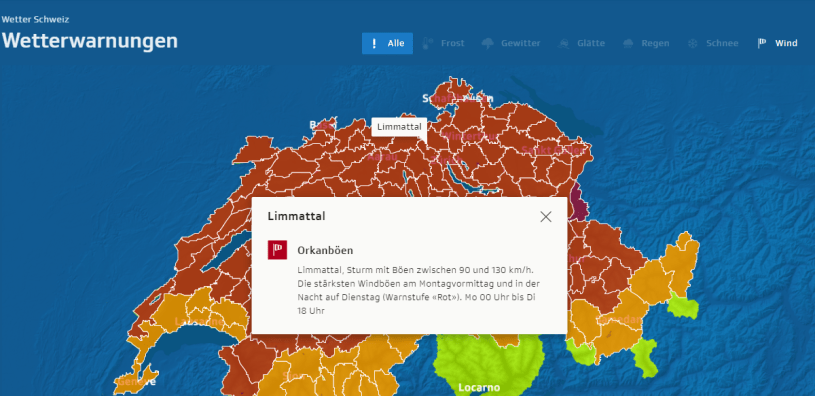 «Sabine» heissts Sturmtief, wo ois ab morn wird beschäftige. Aafangs wirds vor allem im Nordoschte vo de Schwiiz stürmisch, also im Elsgau und im Jura, ab de Nach uf Mentig au im Limmattal. D Windspitze selled höcher si wi bi «Petra», wo aafangs Woche einigi Schäde verursachd het. De Bund het für Mentig und Tsischtig Gfahrestuef 4 usegeh. Es werded Verkehrsbehinderige uf de Strasse, Schiine und i de Luft erwartet.