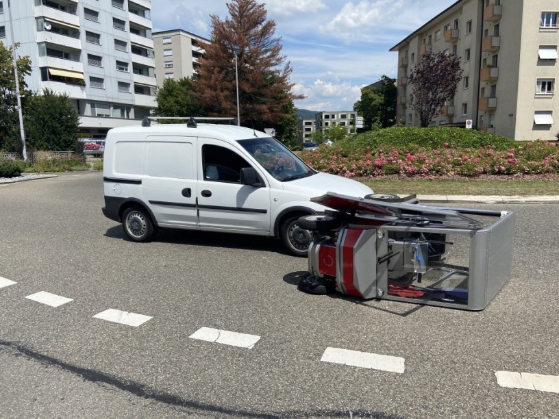 Wi d Kantonspolizei mitteild, isch es am Tsischtig, 14. Juli 2020 kurz vor de Zwöi am Namittag zum Unfall cho. En 73-Jährige isch mit em Auto vo Wettige Richtig Killwange unterwägs gsi. Z Noiehof het er im Kreisel Zürcher-/Lagerstrass en 78-jährige Maa übersehe, wo mit sim Elektromobil scho im Kreisel unterwägs gsi isch. De Elektromobillenker isch bim Unfall licht verletzt und mitere Ambulanz ins Spital brochd worde.