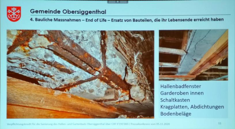 D Sanierig vo de Badi isch im Iiwohnerrot vo Teil vo de SVP und de FDP abglehnt worde. D Gegner vo de Kreditvorlag meined, d Badi chönnd au biere Ablehnig vom Kredit witer offe blibe. De Gmeindrot gseht das anderscht, wil nur mit de Gnehmigung vom Kredit en Untersuech vo kritische Bauteil mögli isch und de Gmeindrot ned s Risiko vo tüüre Haftigsfäll cha und wot iigoh. (Es Interview mit em zueständige Gmeindrot wird folge.)