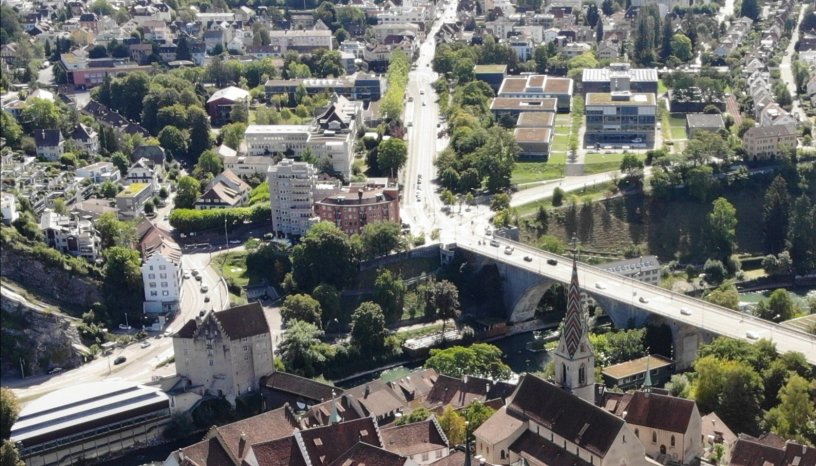 D Hochbrugg z Bade isch vo 1924 bis 1926 baud worde. Für de Vercher i de Region isch si wichtig und wird jetzt instandgsetzt, damit si ihri Ufgab au i de nächschte 25 bis 30 Johr cha erfülle. Im Fokus vo de Saniirig stoht d Instandsetzig vom Beton bi de Böge und de Untersite vo de Böge. Us dem Grund bruchds es Grüst, damit me an di Stelle anne chunnd. Zum dodefür de Platz ha, het sich de Kanton mit de Stadt Bade abgsproche.