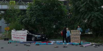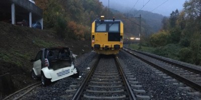 D Kapo suecht Züüge nacheme Unfall am Brückekopf-Ost z Bade